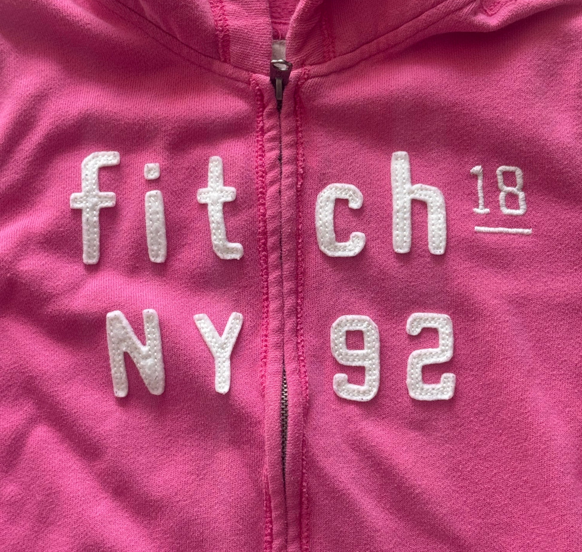 2000s Hot pink zip hoodie with classic Fitch NY 92 lettering. Front pockets and full zip front.