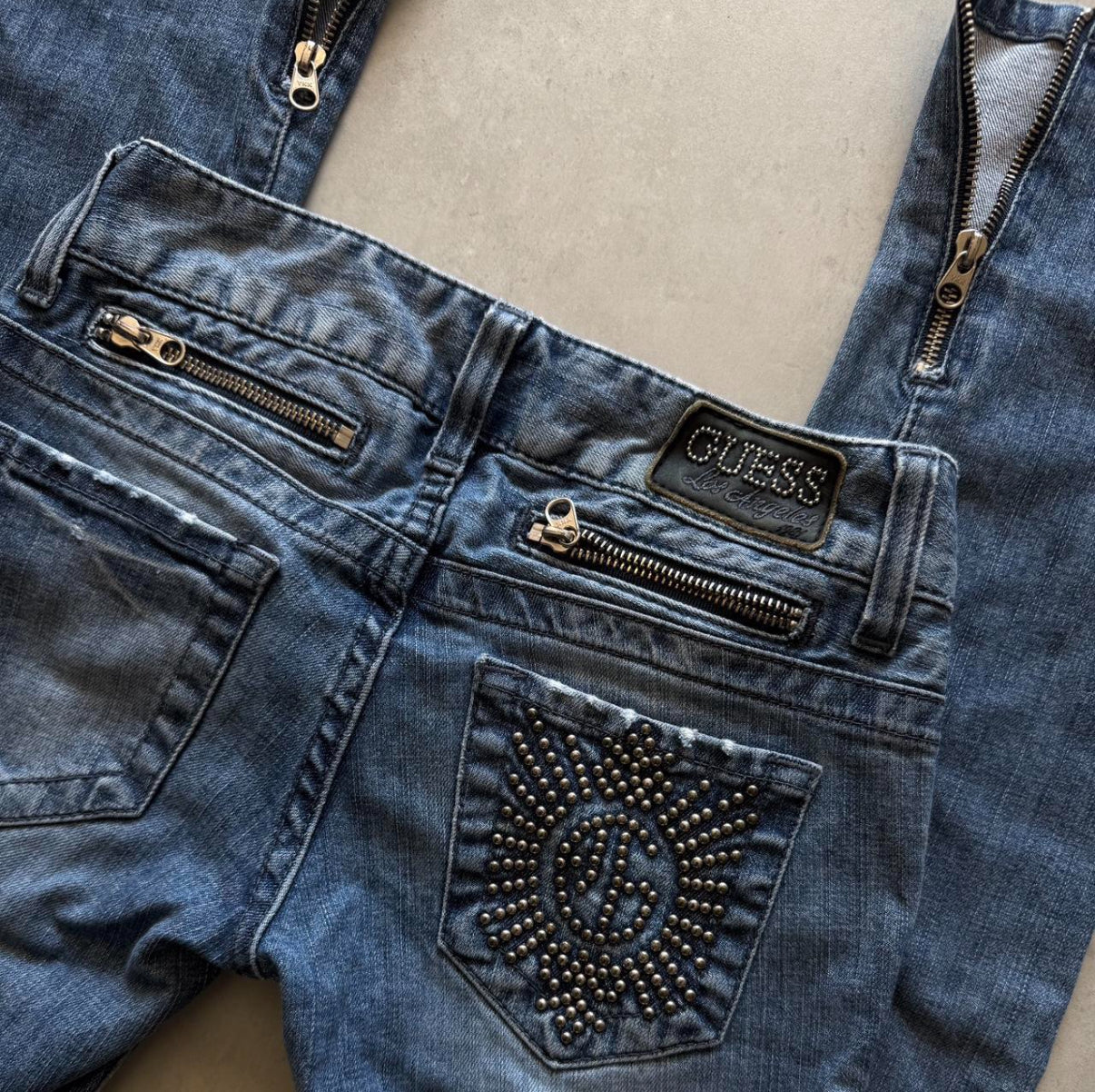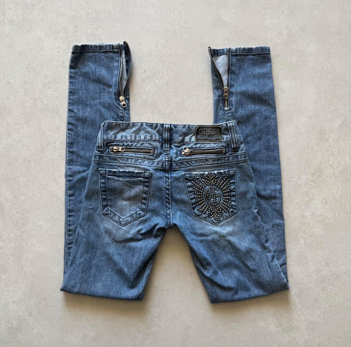 Jeans with studded back pocket and zipper details at the ankle. Low-rise skinny fit.