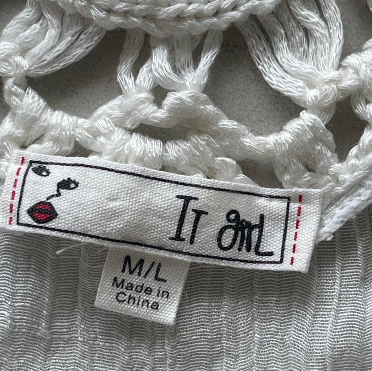 2000s Sheer mesh cover-up with crochet paneling and fringe trim at the hem. Deep V neckline with an oversized flowy fit.