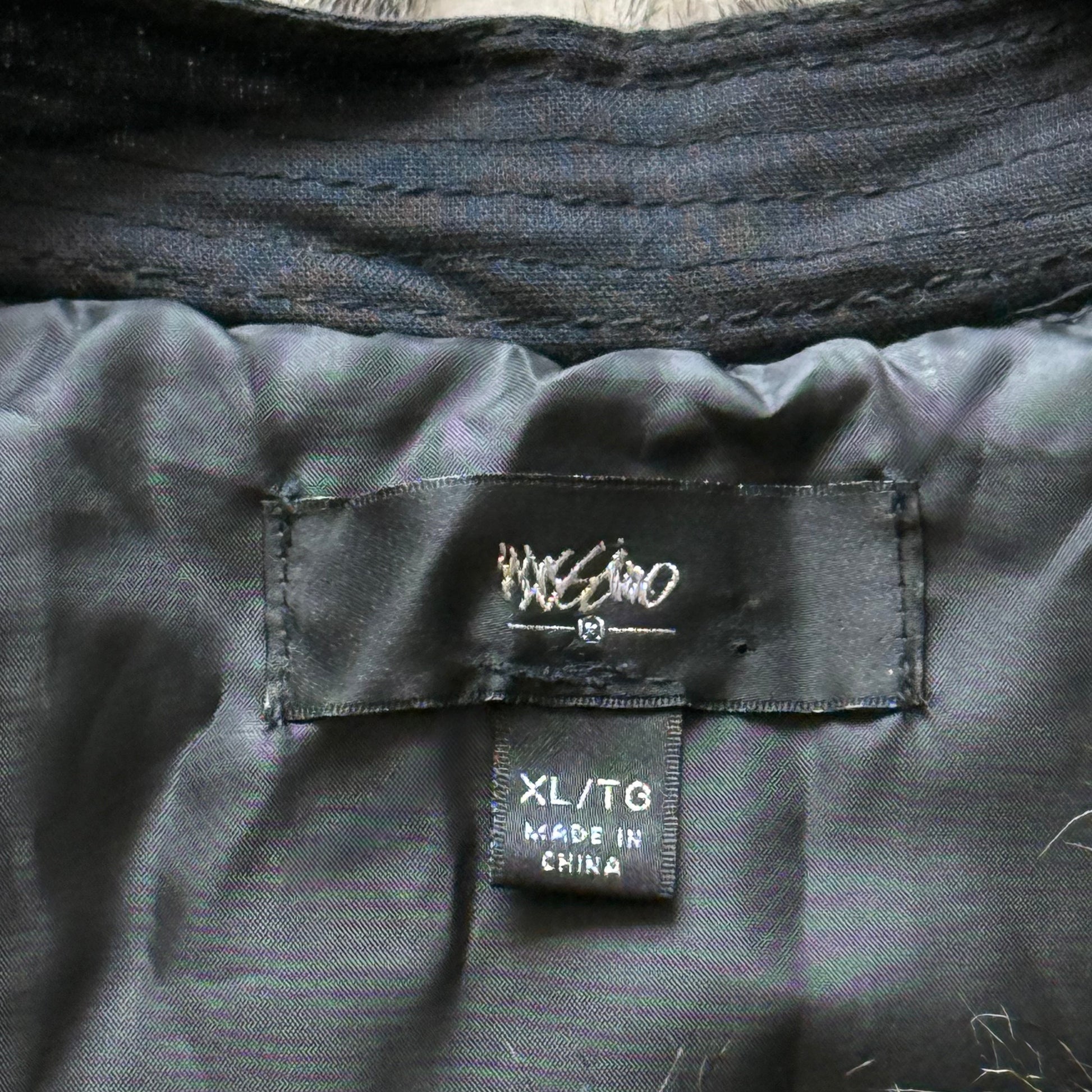Black, grey, and ivory striped faux fur vest with front hook & eye closure. Front band trim. Statement layering piece.
