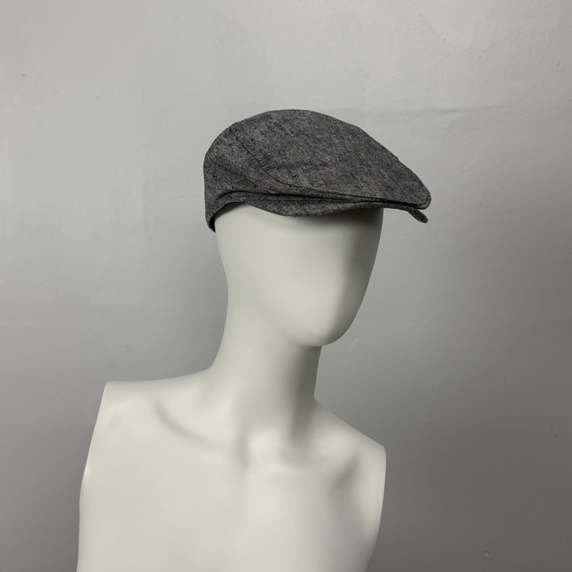 Classic grey newsboy-style flat cap with textured wool blend and structured brim.